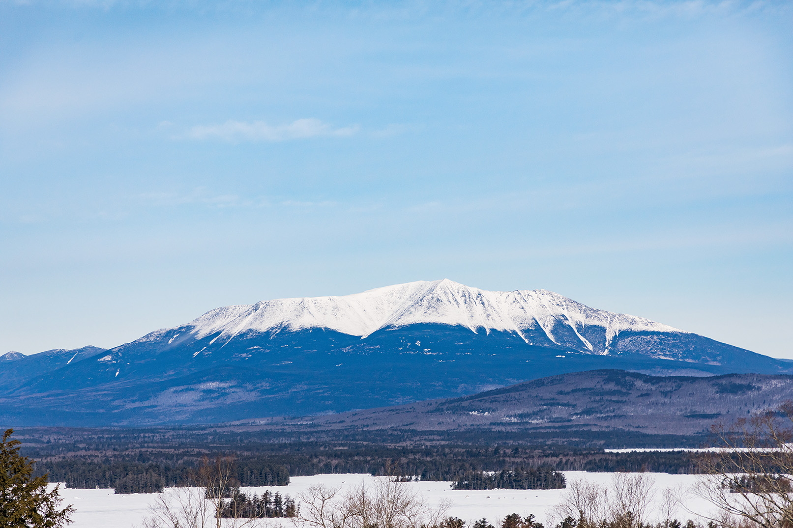 A view of Mount Katahdin across Millinockett Lake from New England Outdoor Center, Millinockett, Maine