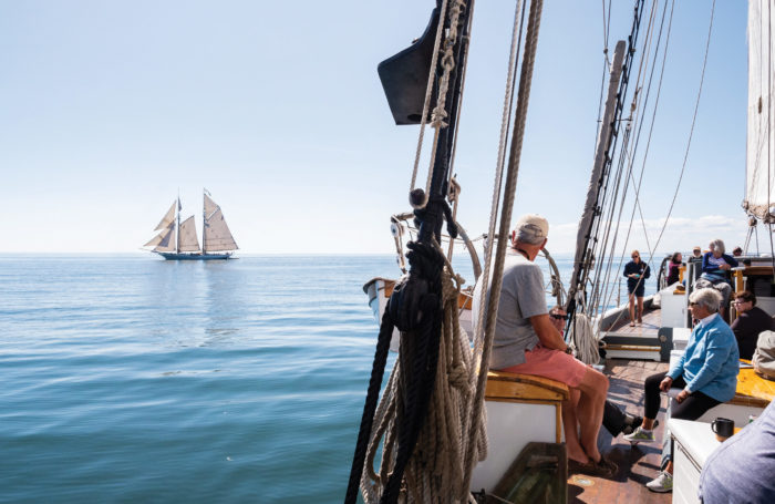 The schooner Mary Day passes by — Sailing aboard the Schooner Lewis R. French out of Camden, Maine with Captain Garth Wells