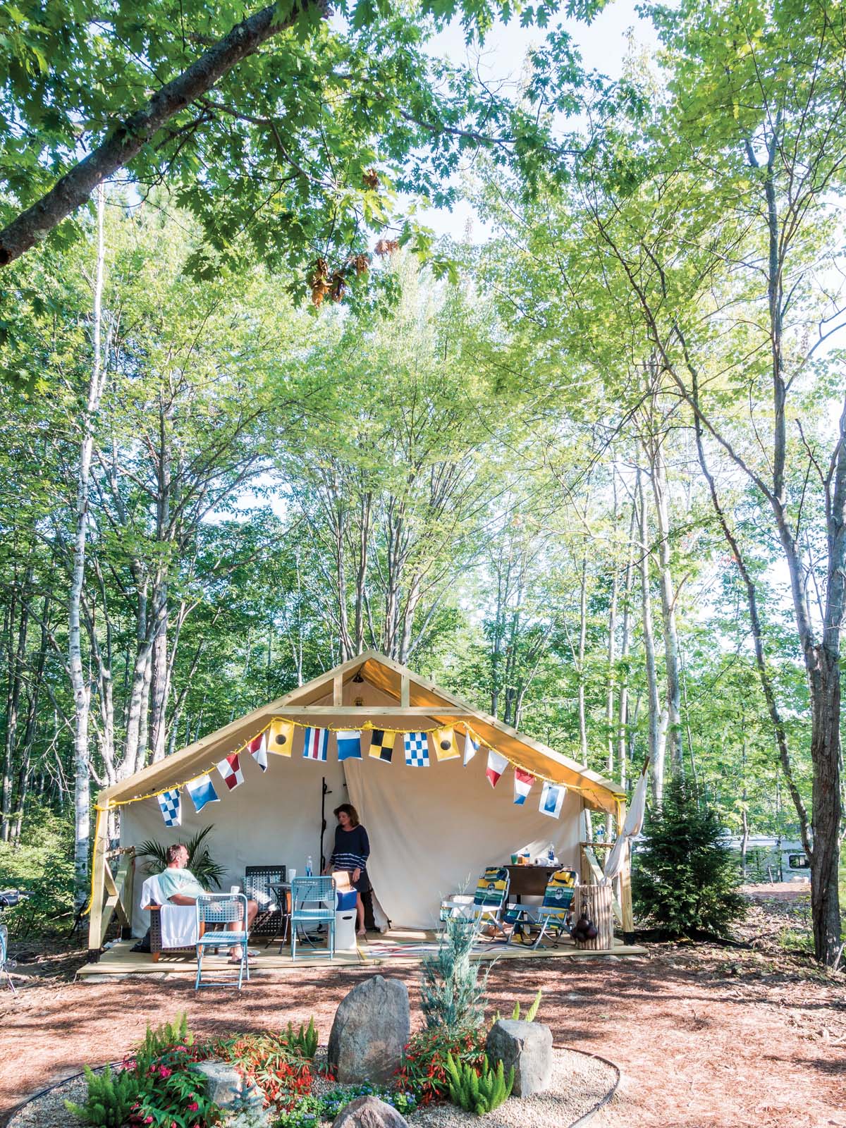 that’s lit nightly by camp staff.Park Models, Glamp Tents, RV sites, Tent sites